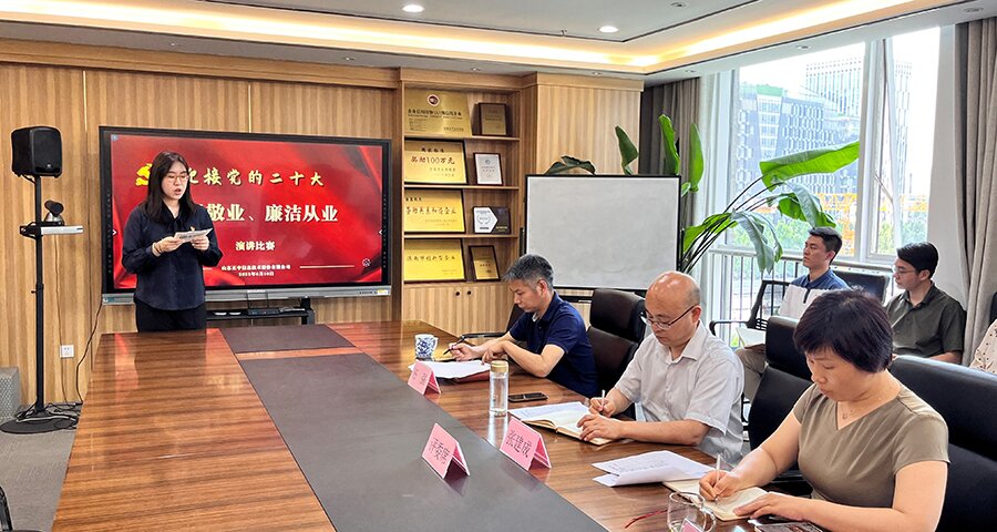 6月10日下午,伟德国际1946举办“爱岗敬业 廉洁从业”演讲比赛。评委团由党支部书记兼董事长张建成、党支部副书记兼副总经理马晓红、公司副总经理任强组成。党支部纪检委员宋丽华作为比赛监督员进行分数统计,共有来自公司各部门的8名选手参赛。