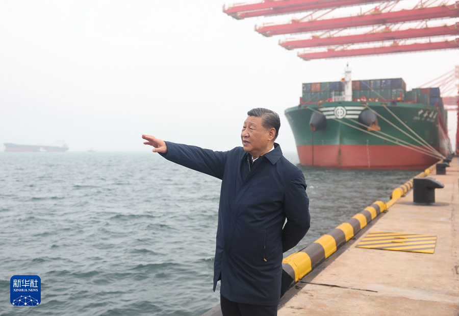 5月22日至24日,中共中央总书记、国家主席、中央军委主席习近平在山东考察。这是22日下午,习近平在日照港考察。新华社记者鞠鹏摄