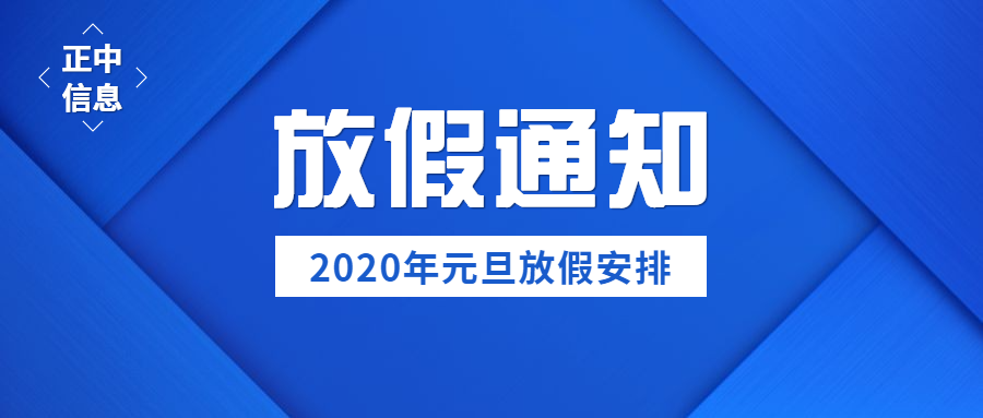 2020年将至,根据《国务院办公厅关于2020年部分节假日安排的通知》,结合公司实际,现将2020年元旦放假安排相关事宜通知如下:2020年1月1日元旦放假共1天,无调休。预祝公司全体员工新年快乐、幸福安康、阖家团圆!